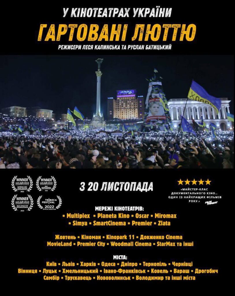 Ми дякуємо режисерам стрічки, що розповідає про біль, любов та втрати нашого народу. За нагадування про те, за що ми боремося, і чому маємо продовжувати цю боротьбу. А якщо ви теж хочете доторкнутися до сучасного кінематографічного мистецтва та подивитися документальний фільм «Загартовані люттю», маємо гарні новини: показ відбудеться у Києві, Львові, Одесі, Харкові, Дніпрі, Тернополі, Чернівцях, Вінниці, Луцьку, Івано-Франківську, Хмельницькому, Білій Церкві, Вишневому, Ковелі, Вараші, Хмільнику, Дрогобичі, Самборі, Трускавці, Нововолинську, Володимирі та інших містах України. А придбати квитки у своєму місті можна за цим посиланням.