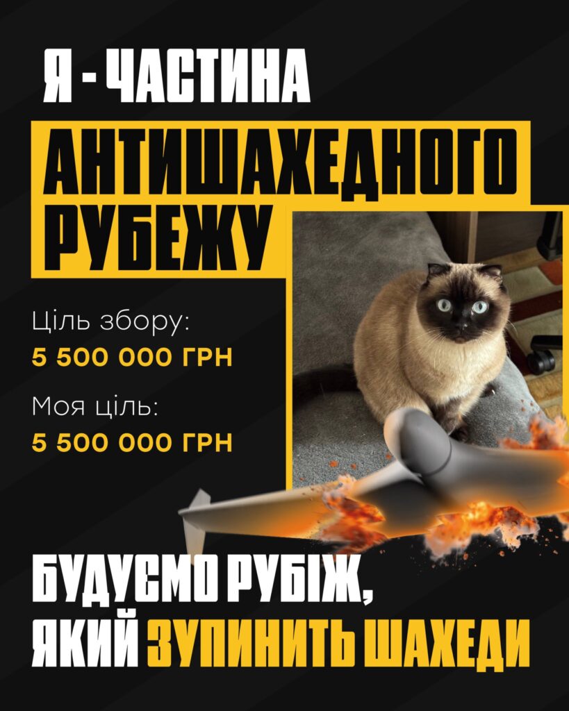 А ви можете доєднатися до нашої спільної будівлі «Антишахедного рубіжу» за допомогою власних зборів: зв’яжіться з нами за допомогою форми за посиланням, відкривайте банки чи конверти, встановлюйте кінцеву мету, та долучайтеся до спільної протидії шахедам, зброї терору, яку потрібно зупиняти ще на рубежі.