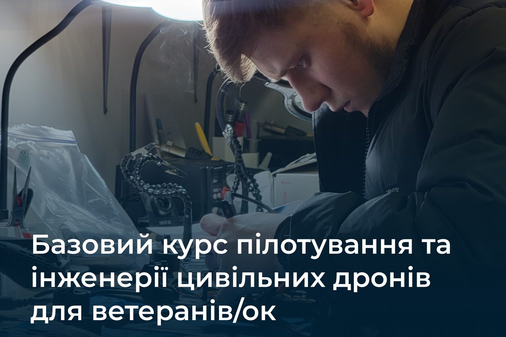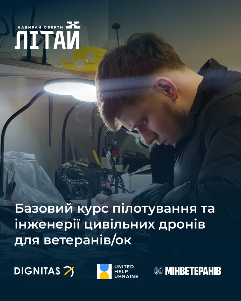 - Для кого: запрошуємо ветеранів та ветеранок, які прагнуть опанувати практичні навички роботи з безпілотними технологіями та отримати нову спеціальність для побудови кар’єри в цивільному секторі.